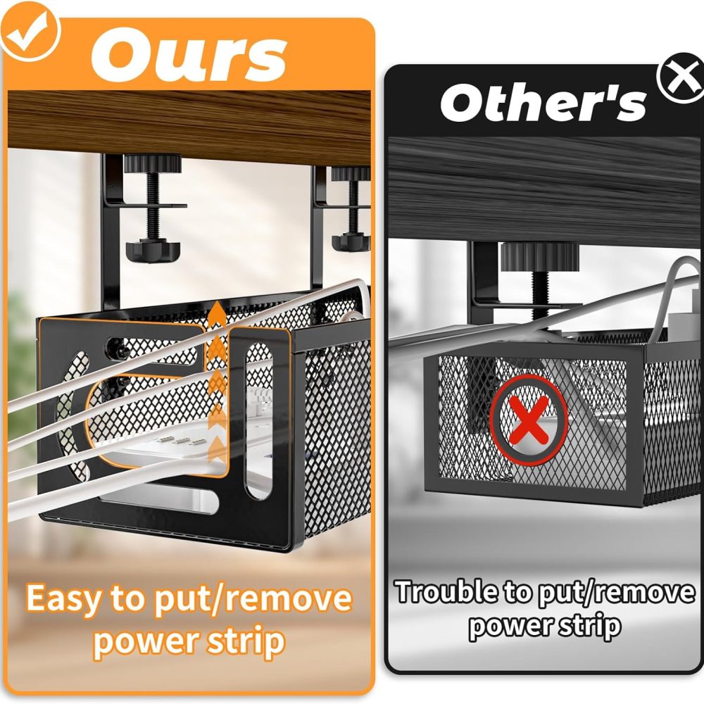 Under Desk Cable Management Tray Black,Metal Mesh Cable Management No Drill,2 Hole with Clamp Mount 25″ with Wire Management and Organizer for Home Office Standing Desk